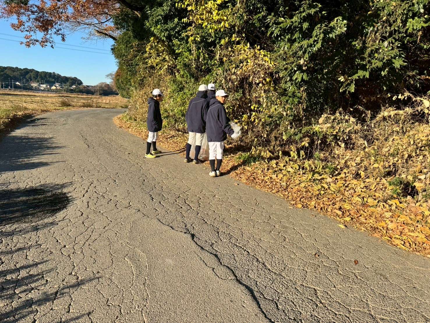袋片手に軍手をつけてグラウンドまわりのゴミを拾い歩きました。